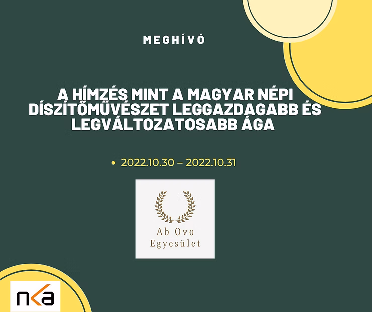 Az Ab Ovo Közművelődési Egyesület interaktív kiállítás szervezett “A hímzés mint a magyar népi díszítőművészet leggazdagabb és legváltozatosabb ága” címmel. Az eseményre 2022.10.30 – 2022.10.31 között került sor Budapesten, ahol magyarországi és erdélyi népművészet iránt érdeklődők találkozhattak és ismerkedhettek meg. A rendezvény megvalósítását a Nemzeti Kulturális Alap támogatta.
