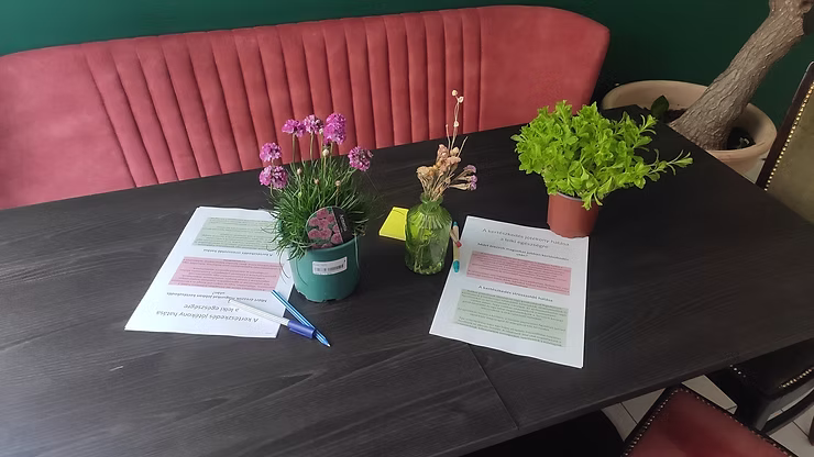 A városi beltéri kertészkedést népszerűsítő projektünk a budapesti és kolozsvári fiatalok körében. Negyedik workshopunk alkalmával a budapesti fiatalok körében előadást tartottunk az öngondoskodásról, melynek fontos részét képezheti a növényekkel való foglalatosság. Fontosnak tartjuk, hogy felhívjuk erre a városokban élő fiatalok figyelmét. A workshopon egyrészről felmérést készítettünk, majd bevontuk a fiatalok egy kvíz játékba is. Arra a kérdésre kerestük a választ: „Vajon ki, mi lenne az ökoszisztémából?” Válaszok között volt aki, a földet, kavicsot, vagy a patakot választotta. A résztvevők többsége olyat választott, ami leginkább illeszkedett a személyiségéhez. A nap végén egy jó beszélgetés kerekedett, hogy ki, mit tudna tenni önmagáért, a mentális egészségéért a növények segítségével.